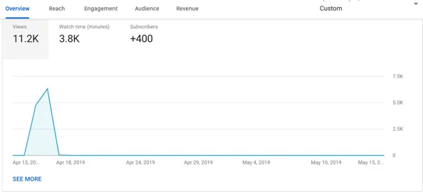 we did wonder if starting a promo on a video that already had 11.2k views would influence how much it would grow, but it didn’t seem to have much of an effect. the second promo ended up adding ~11.4k more views.