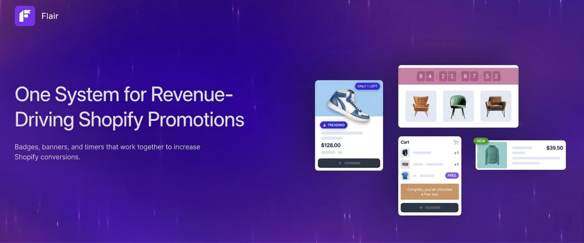It pairs well with popup-based social proof tools. A purchase notification from Fomo tells a visitor that someone just bought the product. A "Only 3 Left" badge from Flair tells them to act now. The two work on different parts of the buying decision.